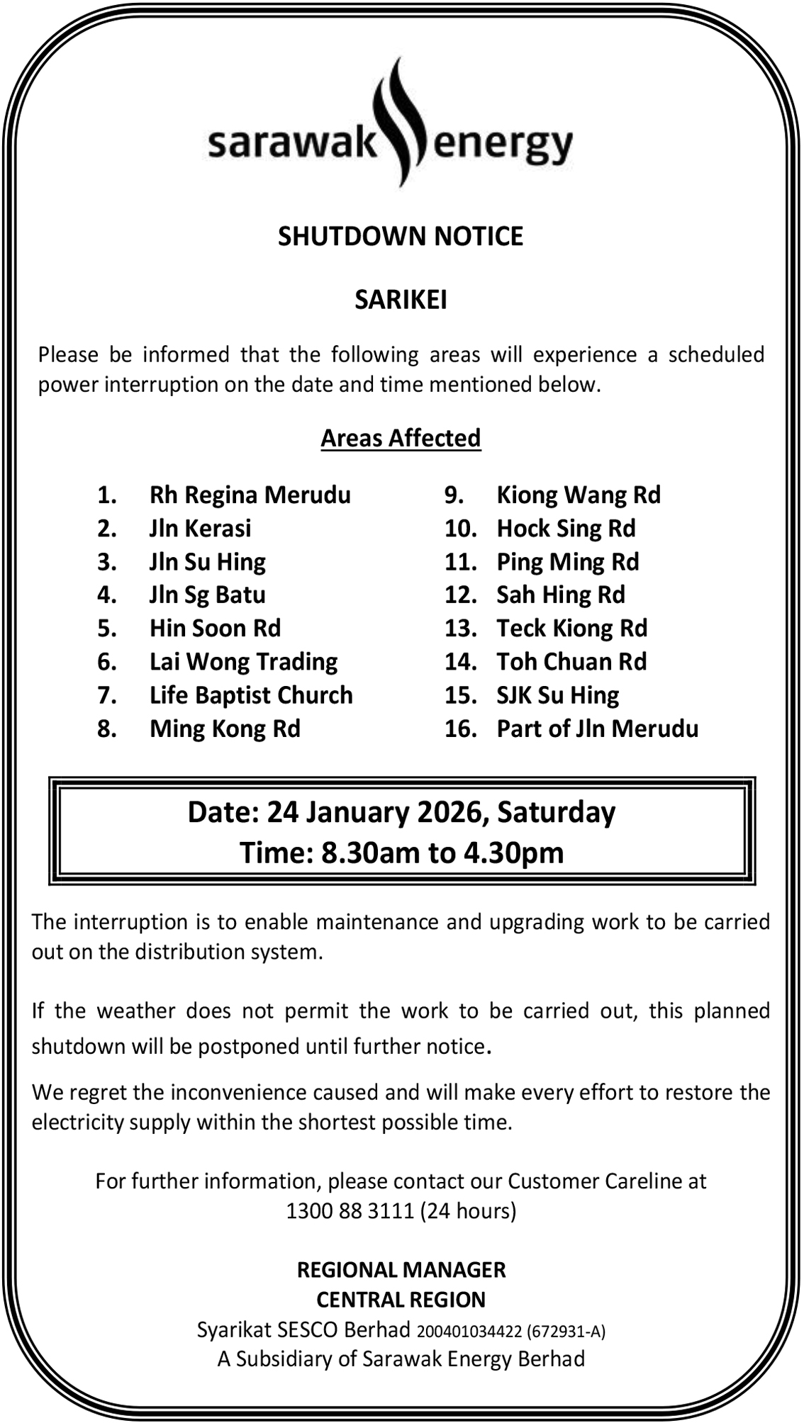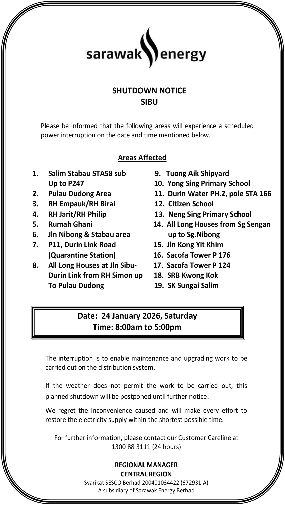SESCO SIBU SHUTDOWN NOTICE (SALIM STABAU)
