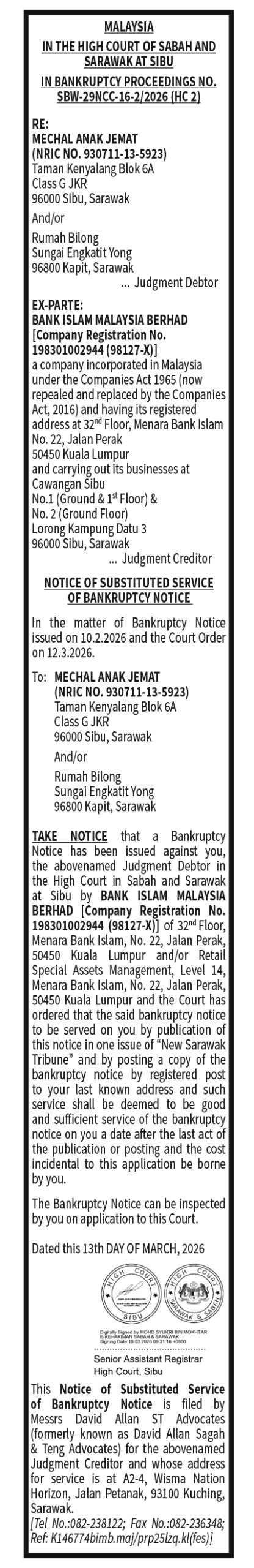 COURT NOTICE DAVID ALLAN