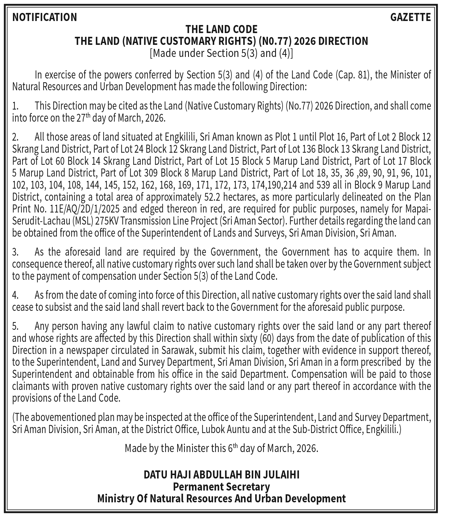 LAND CODE 77