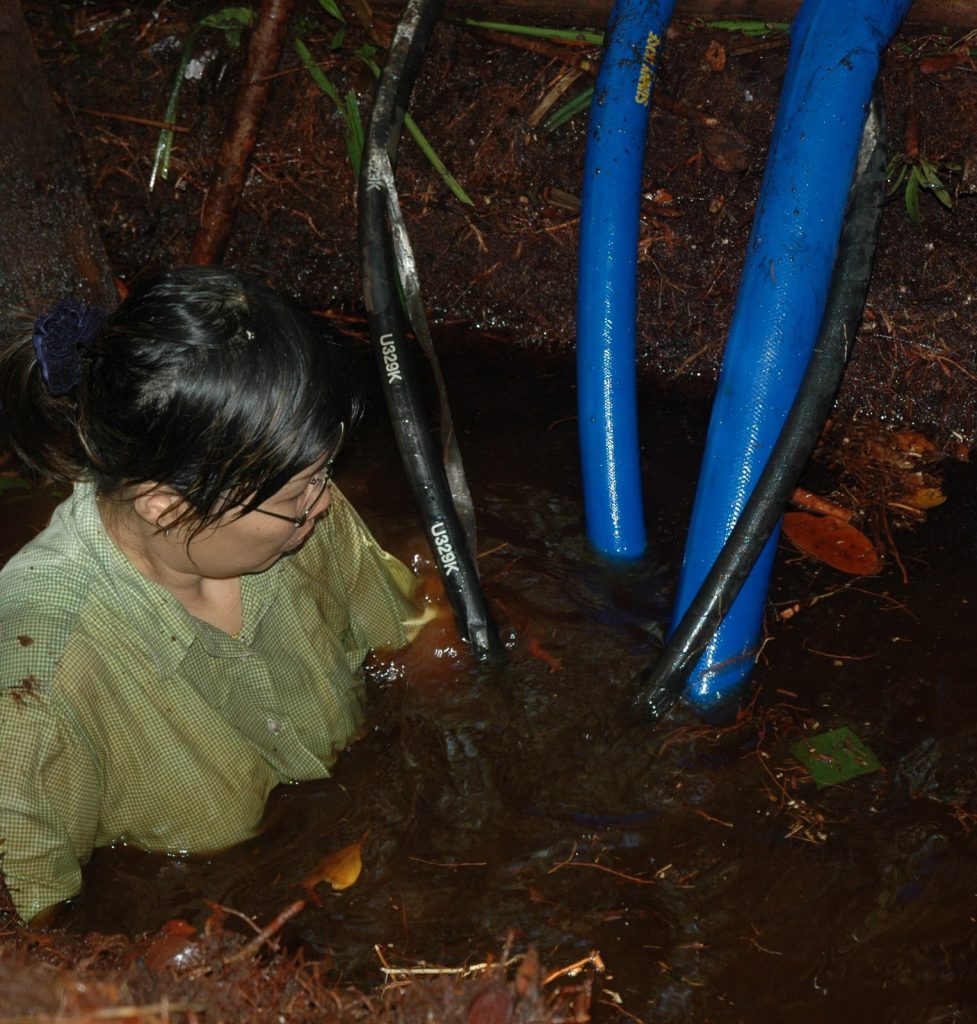 Lulie examines the characteristics of the peat soil.