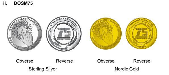 DOSM75 includes a single brilliant uncirculated coin priced at RM16.50 with a mintage of 5,000 pieces, while ASEAN25 offers a two-coin brilliant uncirculated set priced at RM24.20 with a mintage of 5,000 sets.