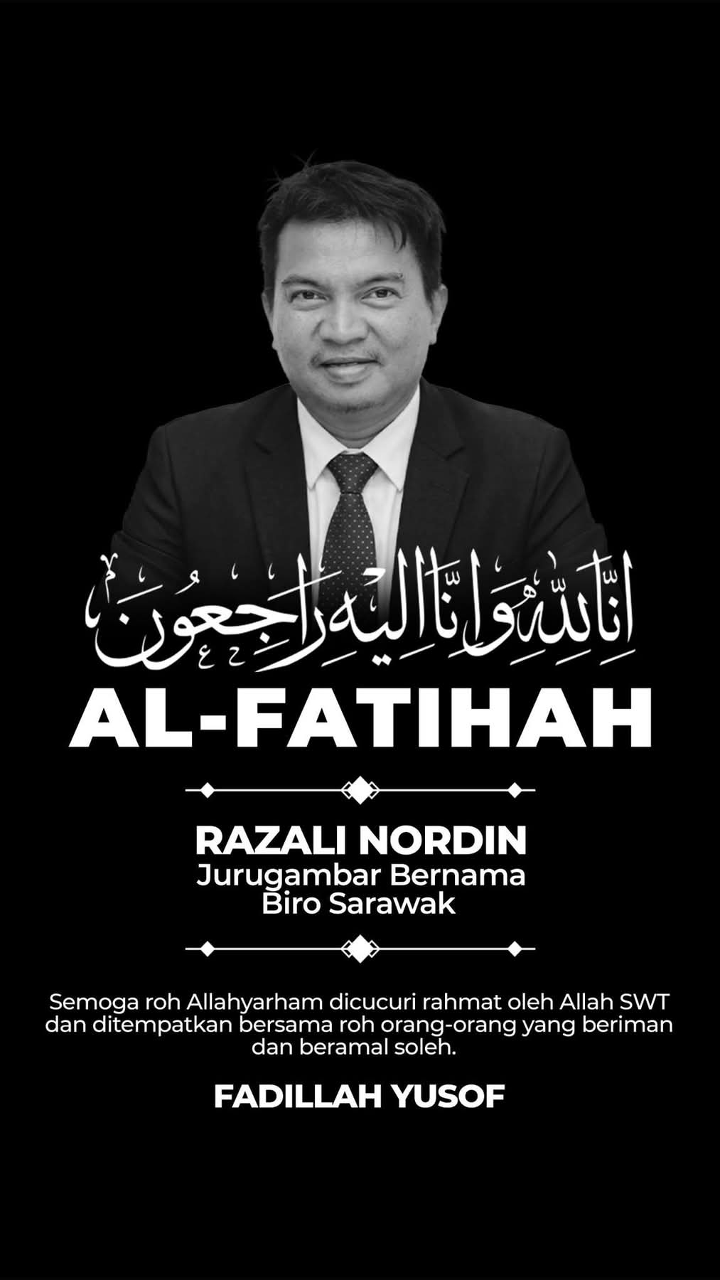 KUCHING: Deputy Prime Minister (Deputy PM) Datuk Amar Fadillah Yusof expressed profound sorrow over the passing of Malaysian National News Agency (BERNAMA) Sarawak Bureau photographer, Razali Nordin, describing the late media practitioner as a committed individual whose contributions would be remembered.