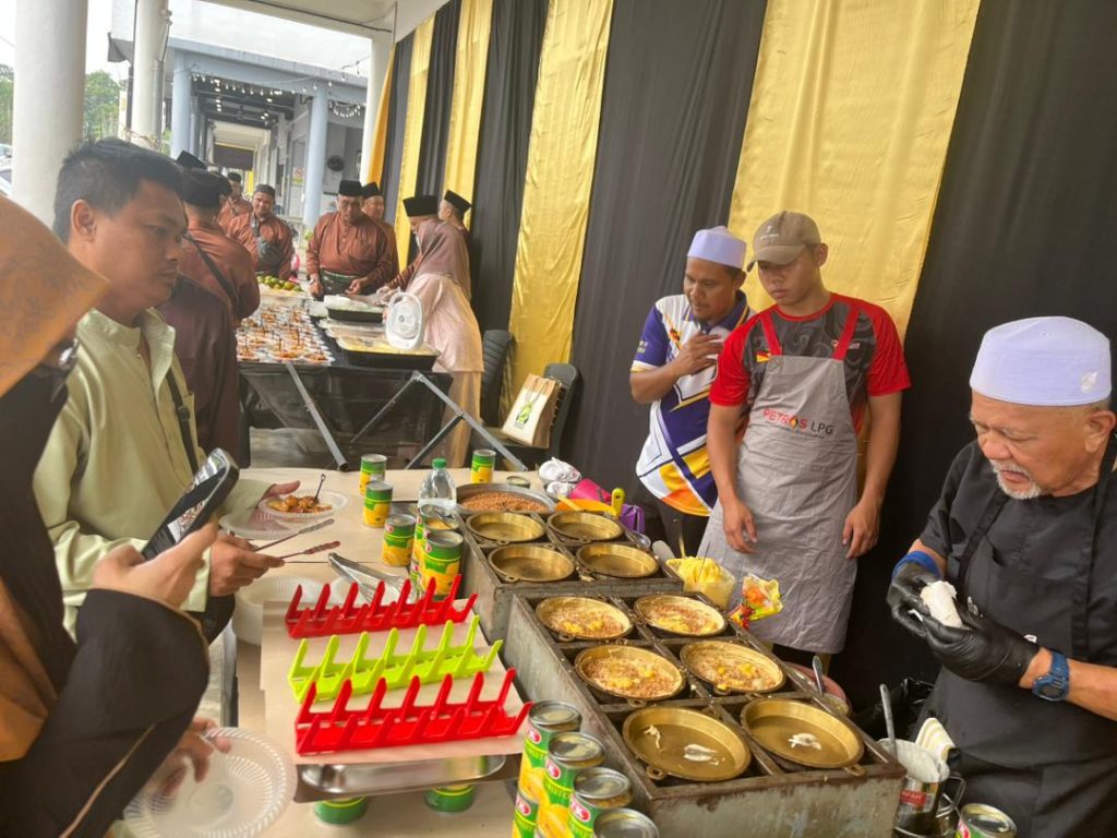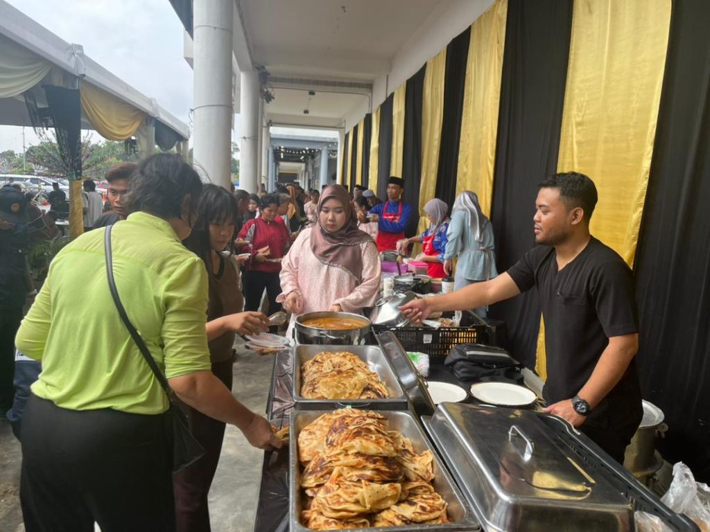 A view of the various food stalls at the open house, offering local favourites such as mi kolok, apam balik, and roti canai to the steady stream of guests throughout the day.