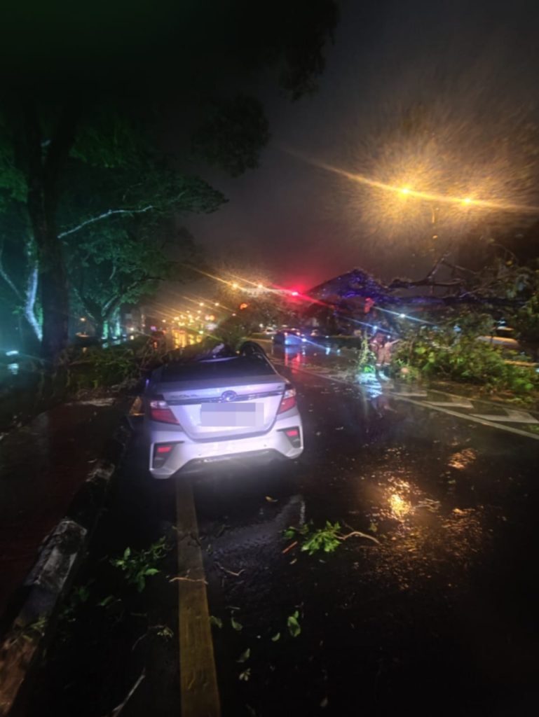 Fallen tree crushes car, halts traffic along Jalan Satok