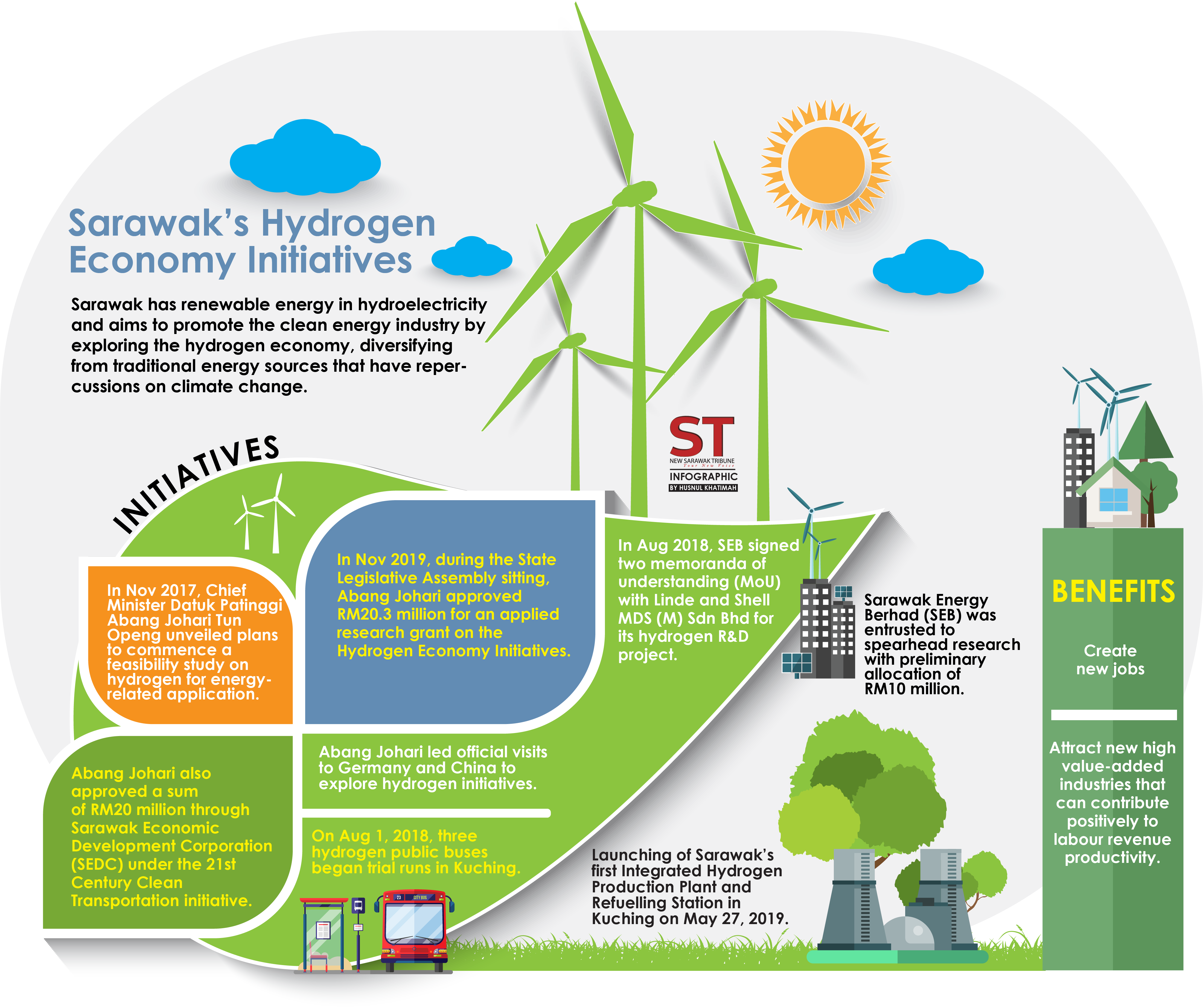 Abang Johari first unveiled plans to commence feasibility study on hydrogen for energy-related application in Nov 2017. After that, the state government entrusted Sarawak Energy to spearhead the research with a preliminary allocation of RM10 million.