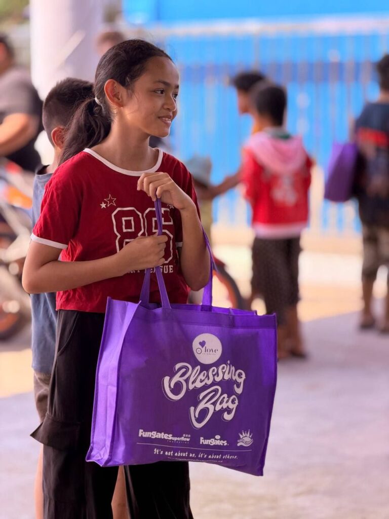 Behind each blessing bag lies the generosity of parents and their children – each child was tasked with filling a bag with a minimum of RM30 worth of groceries.