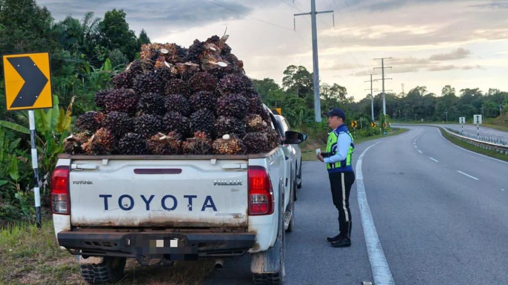 MERADONG: Police detained a four-wheel-drive vehicle carrying oil palm and a logging lorry transporting a dangerous load during ‘Op Perdagangan’ on Tuesday.