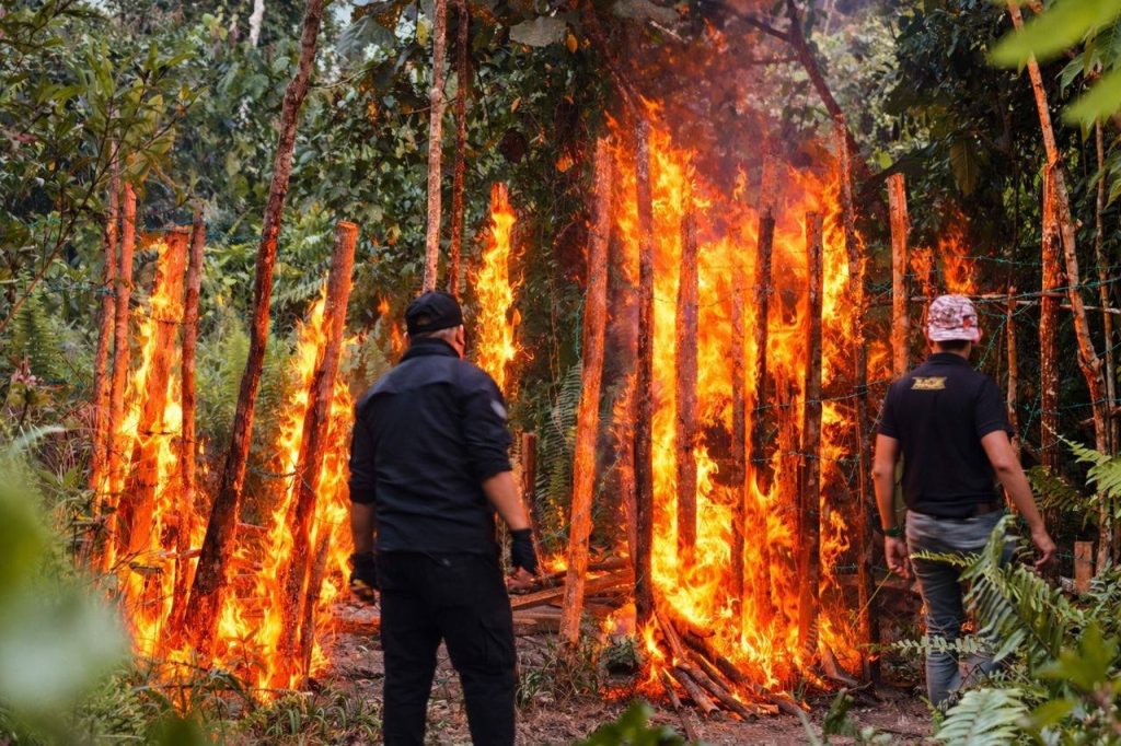 Handout photo shows AADK officers destroying a site believed to have been used for drug abuse.