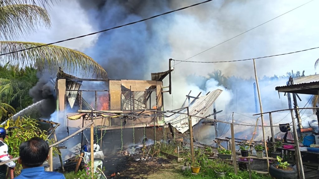 Handout photos show the aftermath of the morning fire that destroyed two wooden houses in Kampung Bunut.
