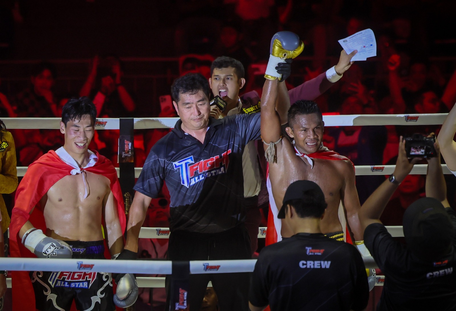 Earlier on Friday night, local professional muay thai exponent, Umar Usman Abu Bakar, easily defeated experienced fighter, Daraeak of Thailand, with a TKO decision.
