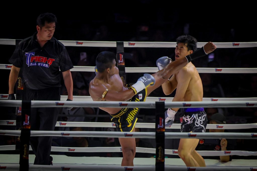 Buakaw showed great control and accuracy in managing Meng’s aggressive strikes, winning the bout through his high level of discipline against the younger opponent through jury decision.