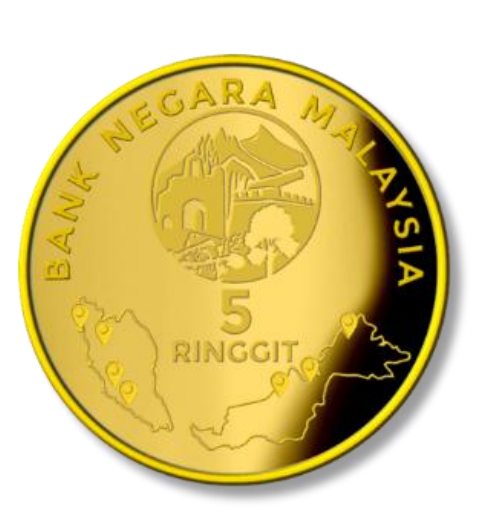 The other four coins in the series feature Kinabalu Park, Bandar Melaka and George Town, Lenggong Valley, and FRIM Forest Park Selangor.