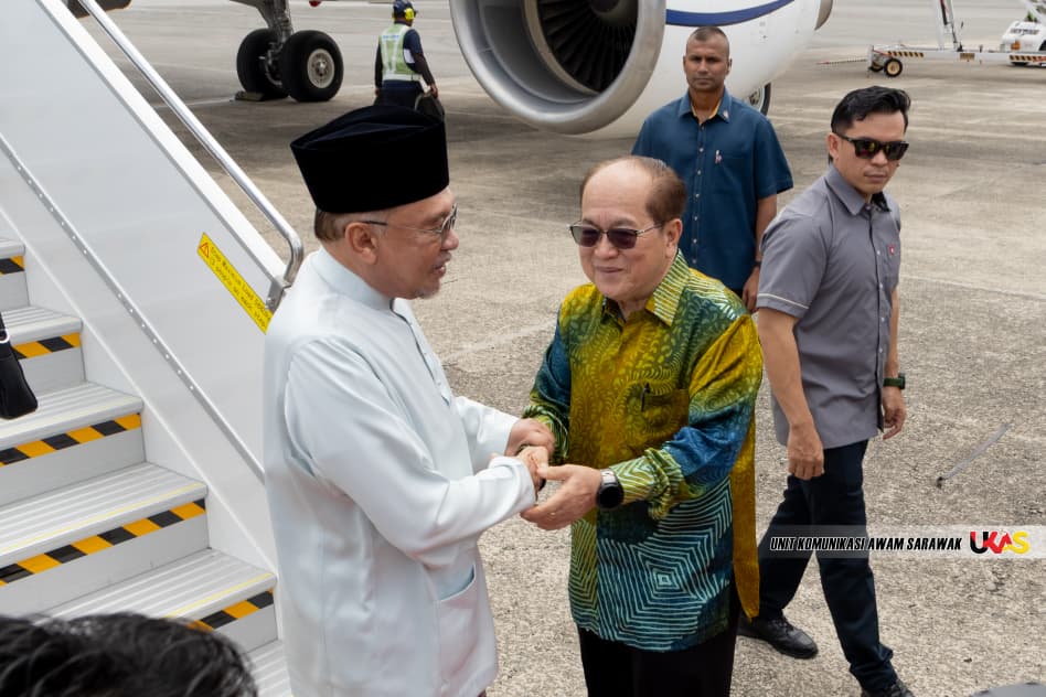 KUCHING: Prime Minister Datuk Seri Anwar Ibrahim arrived at Kuching International Airport (KIA) at about 1.40 pm today for a one-day official working visit to Kuching.