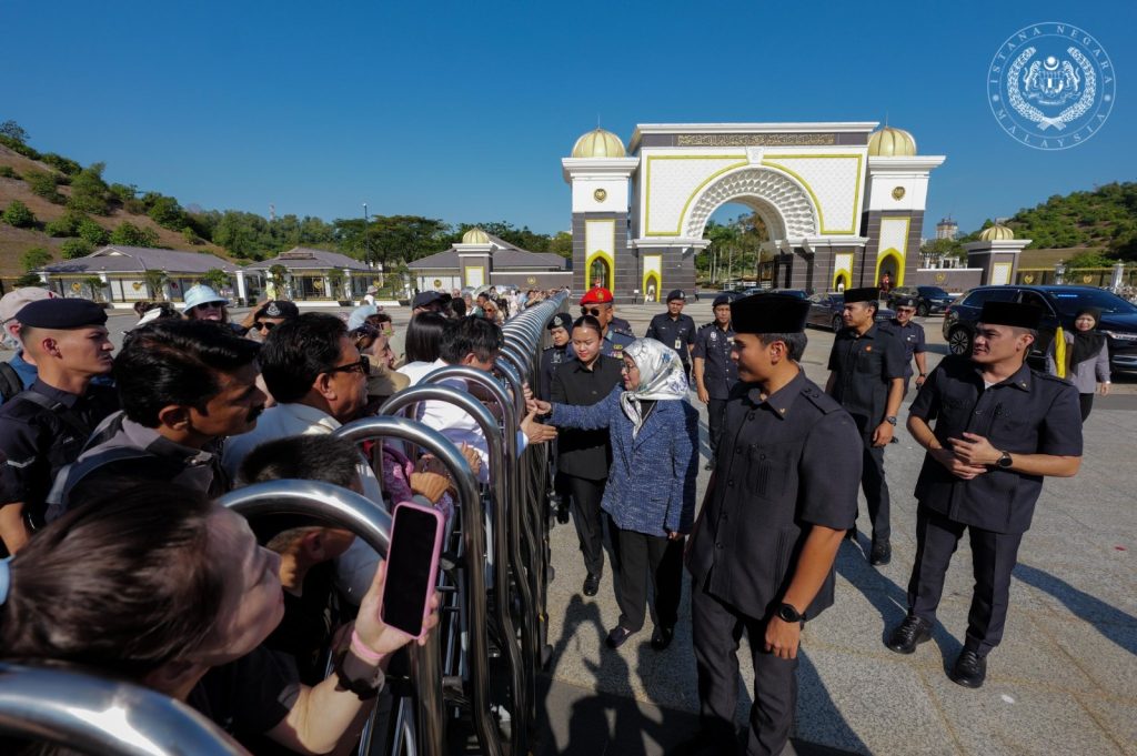 KUALA LUMPUR: Her Majesty Raja Zarith Sofiah, Queen of Malaysia, took time to greet and mingle with a group of tourists at the main entrance of Istana Negara today (Feb 1).