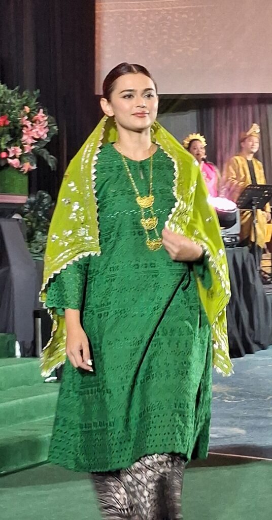 1. D’Keringkam x Maskota – In a spectacular showcase of keringkam, an intricate Sarawakian handcraft, designer Danny Bin Zulkifi of D’Keringkam (Kampung No. 3, Kuching) presented pieces that highlighted 15 years of expertise. The round also featured elegant songket by Miss Ramtiniwati Binti Haji Ramlee from Kampung Gedong, combining classical beauty with modern flair.