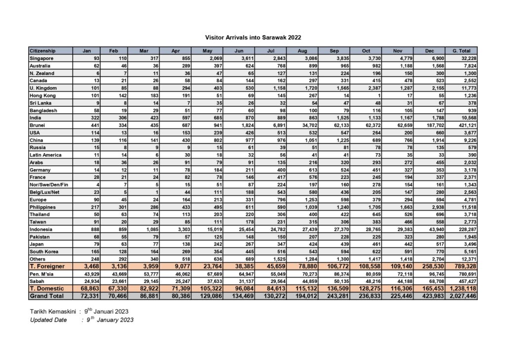 By the end of 2022, Sarawak recorded 789,328 international visitors, a dramatic increase from just 22,378 in 2021.