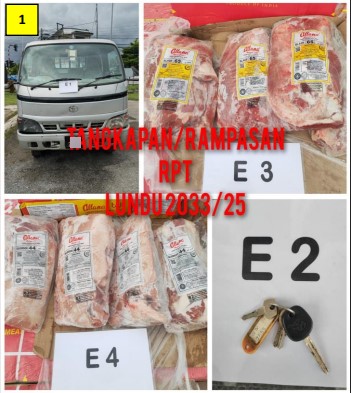 The suspects and seized frozen products have been handed over to the District Veterinary Offices in Bau, Lundu and Tebedu for further action.