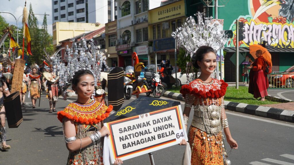 The parade began at the Tun Jugah building with a traditional ‘mamat’ ceremony led by Pemanca Tonny Kulleh, representing the Kenyah community from Belaga.