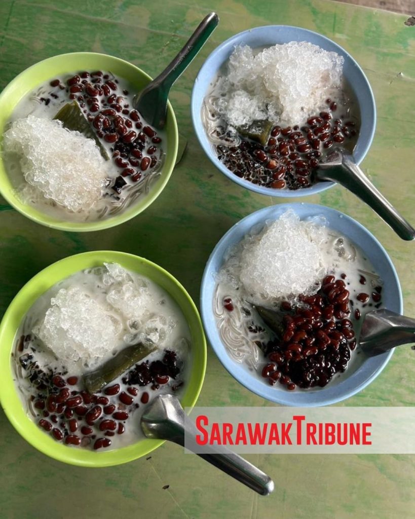 It’s a popular iced dessert in Pontianak with a mix of ingredients, including clear sago noodles (ce hun tiau), red beans, black sticky rice, and grass jelly, all served in a broth of coconut milk and palm sugar with shaved ice.