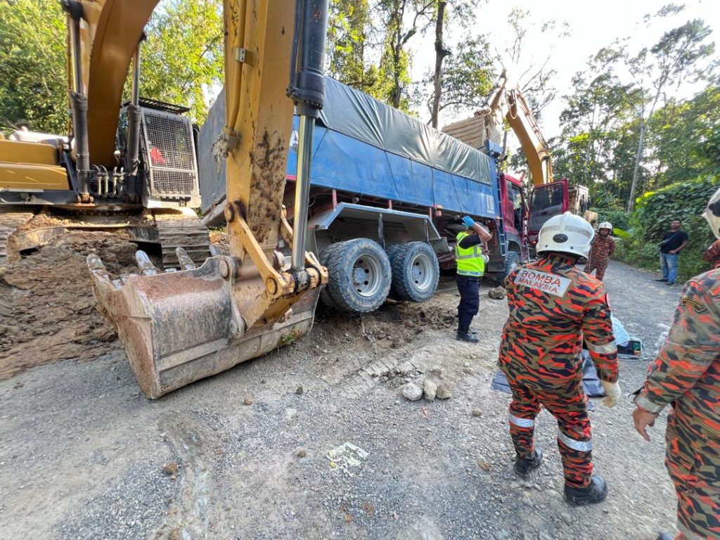Upon arrival at the scene at 2.28 pm, firefighters from the Siburan Fire and Rescue Station (BBP Siburan) found both victims trapped beneath the heavy vehicle.